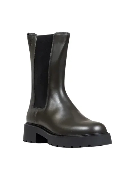 Calvin Klein Кожени боти челси CHUNKY HIGH CHELSEA зелено с равна подметка