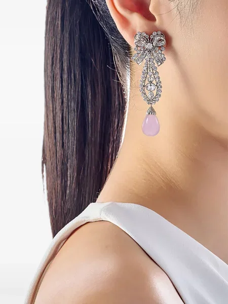 Бяло злато обеци с панделка