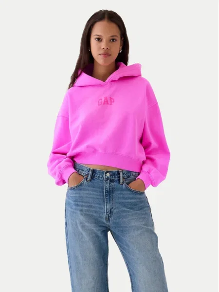 Gap Суитшърт Pg Logo Cropped Po Hoodie Sassy Pink XXS