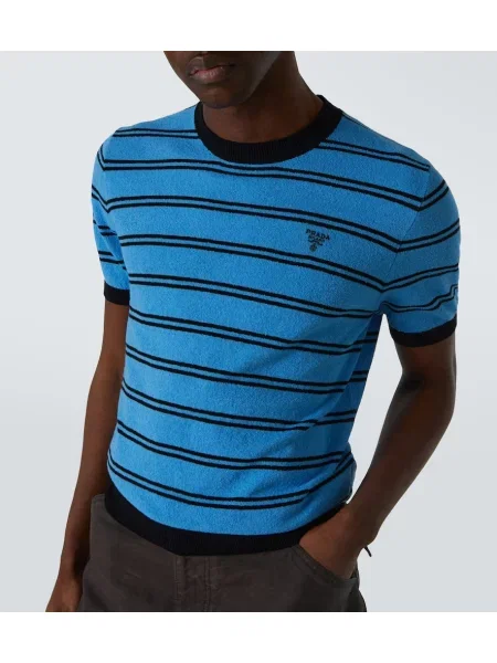 Копринена риза Prada на райета синьо